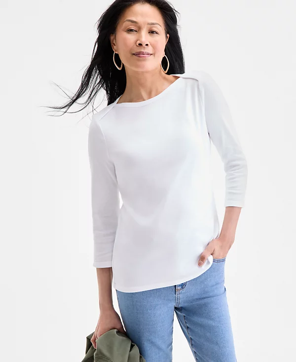 Women’s Pima Cotton 3/4-Sleeve Boat-Neck Top, Regular & Petite, Created for Macy’s
