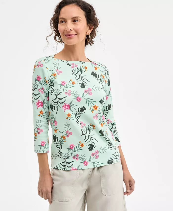 Women’s Printed Pima Cotton 3/4-Sleeve Top, Exclusively at Macy’s